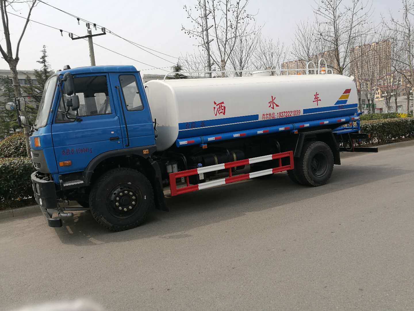 東風153底盤,康明斯190馬力,陜齒小八檔變速箱, 10.00鋼絲胎,罐體容積15m3,帶專用車灑水泵,帶消防接口,自流閥,帶右高位花灑,帶前沖、后灑、工作平臺及高炮,罐體噴“灑水車”字樣,其他按廠家標配。