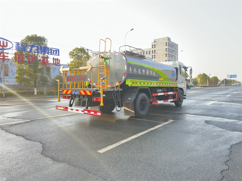 東風(fēng)15噸多功能抑塵灑水車整車配置:東風(fēng)天錦車身,康明斯6缸230馬力渦輪增壓發(fā)動(dòng)機(jī),法士特8檔變速箱,前橋5噸,后橋10噸;10.00R20后雙輪鋼絲胎,氣囊座椅;原廠冷暖空調(diào),中控門鎖,電動(dòng)門窗,LED日間行車燈。罐體4mm厚武鋼專用罐式板制作,實(shí)際容積15立方,罐內(nèi)加裝隔板具有防波作用,以減低汽車行駛時(shí)罐體液體的沖擊。大功率杭州威龍水泵;泵進(jìn)泵出;DN80主出水管,消防栓接口,前沖、后灑、側(cè)噴、后工作平臺(tái)帶綠化水炮,垂直吸程≧7米,灑水寬度≧14-18米,射程≧20-25米,引水時(shí)間<5min,流量90m3/h。鍍鋅沖孔后工作平臺(tái)帶30米S彎高壓水炮,全車316不銹鋼大通徑球閥;自流閥、不銹鋼濾網(wǎng)、帶自吸自排功能。兩根等長輸水管,電泳金屬漆,其余標(biāo)配。可選裝非車帶泵動(dòng)力不銹鋼罐體等。