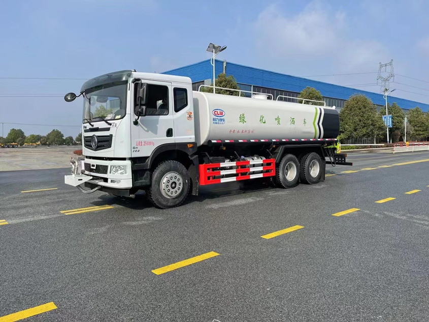 東風T5-20噸多功能抑塵灑水車整車配置:東風T5車身,玉柴6缸270馬力渦輪增壓發(fā)動機,法士特大8檔變速箱,前橋5噸,后橋10噸雙軸并裝;10.00R20輪鋼絲胎,氣囊座椅;原廠冷暖空調(diào),中控門鎖,電動門窗,雙層大梁,多功能方向盤,行車記錄儀。罐體4mm厚武鋼專用罐式板制作,實際容積20立方,罐內(nèi)加裝隔板具有防波作用,以減低汽車行駛時罐體液體的沖擊。大功率杭州威龍水泵;泵進泵出;DN80主出水管,消防栓接口,前沖、后灑、側(cè)噴、后工作平臺帶綠化水炮,垂直吸程≧7米,灑水寬度≧14-18米,射程≧20-25米,引水時間<5min,流量90m3/h。鍍鋅沖孔后工作平臺帶30米S彎高壓水炮,全車316不銹鋼大通徑球閥;自流閥、不銹鋼濾網(wǎng)、帶自吸自排功能。兩根等長輸水管,電泳金屬漆,其余標配。可選裝非車帶泵動力不銹鋼罐體等。
