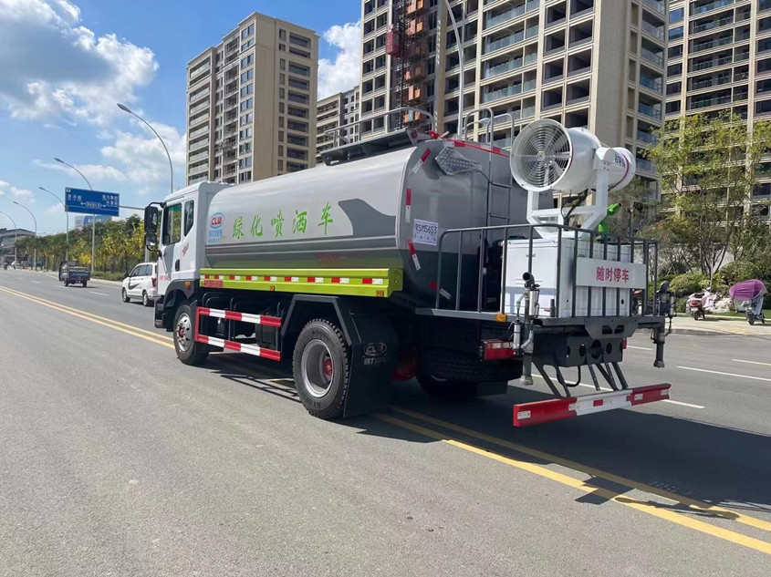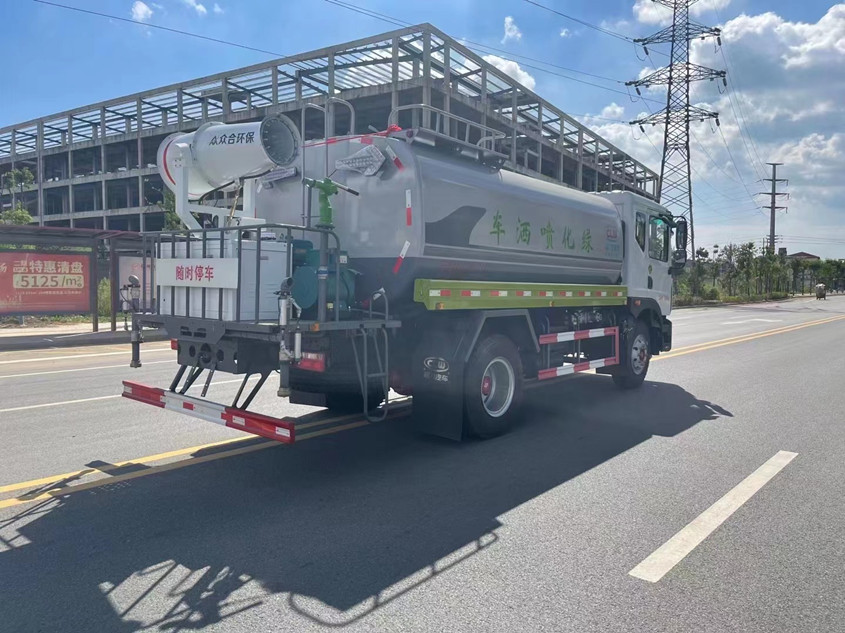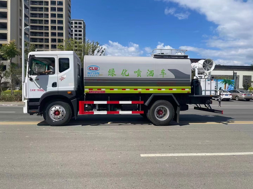 東風12噸抑塵灑水車整車配置:東風D9車身,玉柴200馬力,8檔變速箱,后橋10噸;10.00R20鋼絲輪胎后雙輪,前盤式制動,原廠冷暖空調,中控門鎖,電動門窗,LED日間行車燈。罐體4mm厚武鋼專用罐式板制作,實際容積12立方,罐內加裝隔板具有防波作用,以減低汽車行駛時罐體液體的沖擊。大功率杭州威龍水泵;泵進泵出;DN75主出水管,消防栓接口,前沖、后灑、側噴、后工作平臺帶綠化水炮,垂直吸程≧7米,灑水寬度≧14-18米,射程≧20-25米,引水時間<5min,流量90m3/h。鍍鋅沖孔后工作平臺帶30米S彎高壓水炮,全車316不銹鋼大通徑球閥;自流閥、不銹鋼濾網、帶自吸自排功能。兩根等長輸水管,電泳金屬漆,其余標配。可選裝非車帶泵動力不銹鋼罐體等。