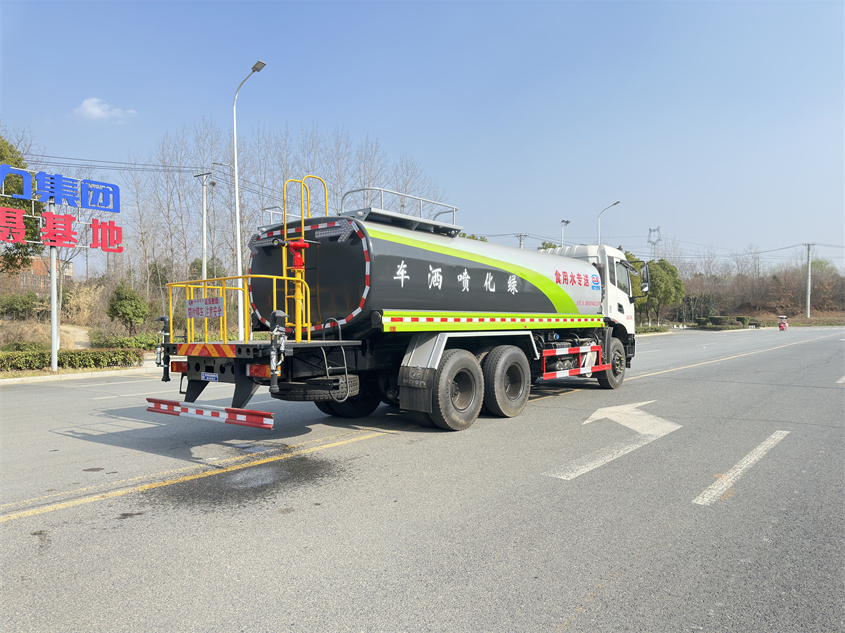 東風天錦22噸多功能灑水車整車配置:東風天錦KR豪華車身,龍擎300馬力6缸渦輪增壓發動機,法士特8檔變速箱高低速轉換,前橋5噸,后橋10噸雙軸并裝;11.00R20輪鋼絲胎,氣囊座椅;原廠冷暖空調,中控門鎖,電動門窗,雙層大梁,多功能方向盤,行車記錄儀。罐體4mm厚武鋼專用罐式板制作,實際容積22立方,罐內加裝隔板具有防波作用,以減低汽車行駛時罐體液體的沖擊。大功率杭州威龍水泵;泵進泵出;DN80主出水管,消防栓接口,前沖、后灑、側噴、后工作平臺帶綠化水炮,垂直吸程≧7米,灑水寬度≧14-18米,射程≧20-25米,引水時間<5min,流量90m3/h。鍍鋅沖孔后工作平臺帶30米S彎高壓水炮,全車316不銹鋼大通徑球閥;自流閥、不銹鋼濾網、帶自吸自排功能。兩根等長輸水管,電泳金屬漆,其余標配。可選裝非車帶泵動力不銹鋼罐體等。