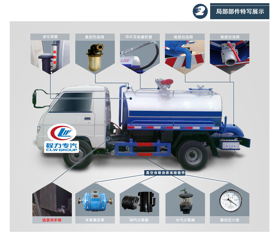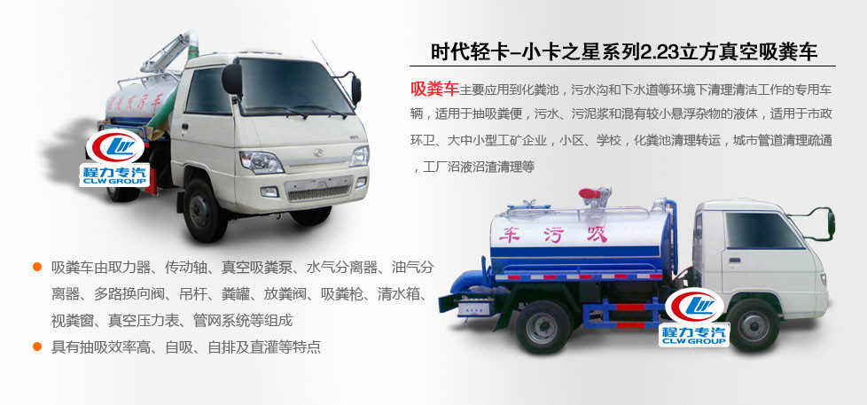 福田時代小卡之星2方小型吸糞車罐體采用機器壓板一次性成型技術,采用先進旋邊機,罐體包罐機工藝保證了罐體制作的精度和美觀。全國獨有烤漆工藝,防腐除銹,多層底漆、面漆噴涂。主要為城鄉環衛部門抽吸和運送糞便及其它污水。適用于抽吸糞便,污水、污泥漿和混有較小懸浮雜物的液體,適用于市政環衛、大中小型工礦企業,小區、學校,化糞池清理轉運,城市管道清理疏通,工廠沼液沼渣清理等。