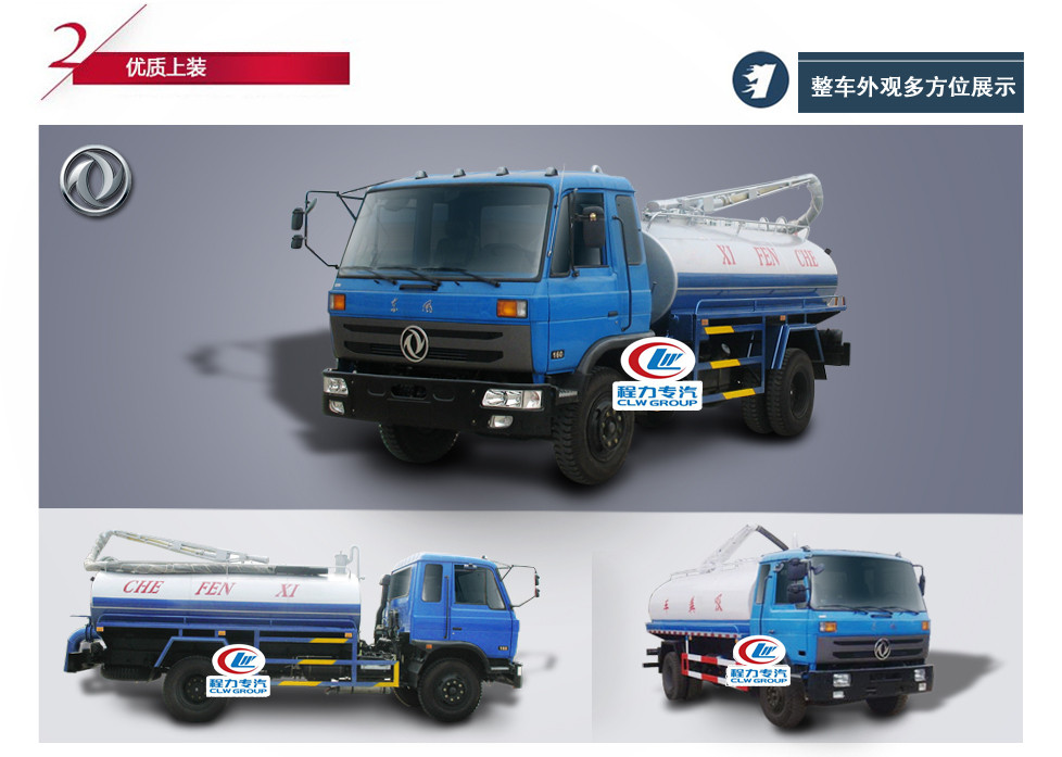 東風天錦12方吸糞車罐體采用機器壓板一次性成型技術,采用先進旋邊機,罐體包罐機工藝保證了罐體制作的精度和美觀。全國獨有烤漆工藝,防腐除銹,多層底漆、面漆噴涂。主要為城鄉環衛部門抽吸和運送糞便及其它污水。適用于抽吸糞便,污水、污泥漿和混有較小懸浮雜物的液體,適用于市政環衛、大中小型工礦企業,小區、學校,化糞池清理轉運,城市管道清理疏通,工廠沼液沼渣清理等。