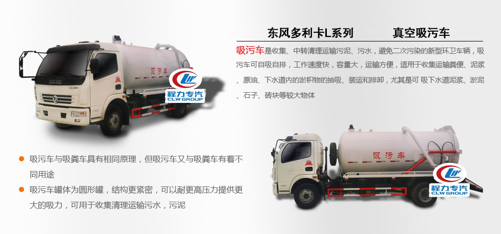 專用功能:吸污車專用部分由取力器、傳動軸、真空吸污泵、壓力罐體、液壓部分,管網系統、真空壓力表、視糞窗、洗手裝置等組成,隨車配置大功率真空吸污泵和優質液壓系統,罐體封頭一次壓鑄成型、罐體可后開、雙頂自卸。罐內污物可通過后蓋直接傾倒,具有真空度高(比吸糞車的吸力更大)、噸位大、效率高、用途更廣泛的特點。