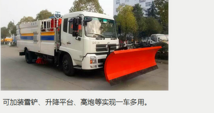 東風多利卡洗掃車采用:單排可以前翻駕駛室,國五排放發(fā)動機,發(fā)動機功率為115千瓦,朝柴156馬力發(fā)動機,萬里揚6檔變速箱,5.5噸后橋,8.25R16鋼絲胎,帶動力轉向,氣制動,ABS,駱駝電瓶,空調,電動門窗,中控鎖, 中置兩掃盤,中置寬吸嘴,吸盤內置高壓噴桿,副發(fā)動機為康明斯140馬力發(fā)動機,清洗寬度3.5米,高壓沖洗高度≥21米,水罐容積4噸,垃圾箱容積5噸,最大清掃能力7萬平方米/小時。12. 18米高壓沖洗卷盤。清掃寬度3.5米;清洗壓力10MPa;吸入粒度φ100mm。